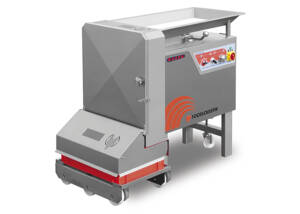 Cortadora de dados Mod. Classic 96/96+Características técnicas Potencia del motor de 2,6kW: Potencia hidráulica incomparable, más del doble del volumen de aceite que en máquinas similars. Increíble longitud de corte: 45MM infinitamente ajustable. Alto rendimiento: hasta 560 cortes por minuto. Cuchillas de reja extremadamente largas – proporcionan un corte más limpio de la carne y los nervios para generar cubos perfectamente separados y acabados en todos los lados. Excelente manejo de la máquina: Señal visual para seguridad de la máquina y disponibilidad para la carga. Sistema de doble cámara. Operación con una sola mano con apertura longitudinal de la cámara para un sellado óptimo de la cámara. Puerta de higiene: el producto al ser cortado queda completamente cerrado para evitar contaminaciones y garantizar el grado más alto de seguridad. Móvil con ruedas. Sección de corte: 90 x 90 mm.Mod, Classic 96: Pre-compresión de 4 lados Rendimiento máximo: 1.100 kg/h Tamaño de la cámara: 96 x 96 x 310 mm Longitud X Anchura X Altura: 1300 X 660 X 1115 mm Peso: 260 kgsMod, Classic 96+: Pre-compresión de 4 lados Rendimiento máximo: 1.400 kg/h Tamaño de la cámara: 96 x 96 x 530 mm Longitud X Anchura X Altura: 1700 X 660 X 1115 mm Peso: 300 kgs