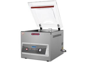 Envasadora al vacío Mod. GVPCaracterísticas técnicas Construida totalmente en Acero inoxidable. Tapa metacrilato. Control digital. Barra de soldadura desenchufable. Atmosfera protectora opcional. Barra de corte de bolsa opcional. Barra doble de soldadura opcional. Soporte inclinado para líquidos opcional. Mod. GVP-260 Medidas de la barra 260 mm Medidas de la cámara 270 x 350 x 190 mm Dimensiones de la máquina 410 x 470 x 390 mm Bomba de vacío DVP 6 m3/h Consumo eléctrico 230V 50/60Hz 1,1 KW Peso 26 Kg Mod. GVP-320 Medidas de la barra 320 mm Medidas de la cámara 330 x 330 x 215 mm Dimensiones de la máquina 460 x 460 x 460 mm Bomba de vacío Busch 8 m3/h Consumo eléctrico 230V 50/60Hz 1,1 KW Peso 36 Kg Mod. GVP-365 Medidas de la barra 365 mm Medidas de la cámara 370 x 440 x 210 mm Dimensiones de la máquina 510 x 560 x 510 mm Bomba de vacío Busch 16 m3/h Consumo eléctrico 230V 50/60Hz 1,0 KW Peso 39 Kg Mod. GVP-420 Medidas de la barra 420 mm Medidas de la cámara 430 x 430 x 220 mm Dimensiones de la máquina 560 x 595 x 560 mm Bomba de vacío Busch 16 m3/h / Bomba de vacío Busch 21 m3/h Consumo eléctrico 230V 50/60Hz 1,1 KW / 1,4 KW Peso 60 Kg / 62 Kg Mod. GVP-520 Medidas de la barra 520 mm Medidas de la cámara 530 x 530 x 235 mm Dimensiones de la máquina 660 x 695 x 565 mm Bomba de vacío Busch 21 m3/h / Bomba de vacío Busch 25 m3/h Consumo eléctrico 230V 50/60Hz 1,3 KW / 1,2 KW Peso 78 Kg / 78 Kg