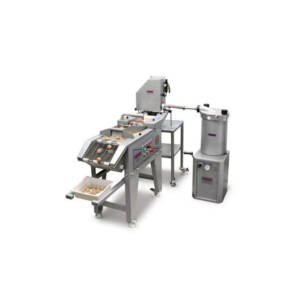 Fabricación de albóndigas (A)Características técnicas Albóndigas de 7 a 35 gramos. Producción hasta 7.500 piezas / hora. Consta de: 1 Embutidora, 1 Formadora Mod. S-1500-P, 1 Rebozadora.