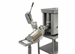 Porcionador manual para carne picada Mod. PMCaracterísticas técnicas Construido en Acero Inoxidable. Con inclinación regulable. Las porciones son regulables, variando la longitud o cambiando la boquilla. Consume papel en bobinas. Perfecta presentación del producto. Corte del papel y porción de carne con sistema manual. Medidas: 500 x 250 x 500 mm. Peso: 14 Kg.PUEDE FORMAR PASTILLAS O CILINDROS DE CARNE PICADA (Con soporte de papel) ACOPLAMIENTOS POSIBLES A EMBUTIDORA O PICADORA 98: – En cualquier acoplamiento el largo máximo es de 220 mm y el grueso máximo para pastillas o cilindros es de 30 mm.ACOPLADO A EMBUTIDORA: – Puede formar pastillas o cilindros de 100 a 115 mm de ancho según pedido.ACOPLADO A PICADORA 98: – Con boca formadora simple para pastilla (ancho 80 mm). – Con boca formadora especial para pastilla o cilindros (ancho de 100 a 115 mm según pedido).