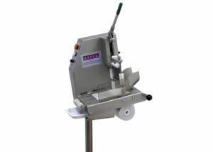 Porcionador semi-automático para carne picada Mod. PMTCaracterísticas técnicas Construido en Acero Inoxidable. Con cinta interior traccionada con inclinación y velocidad regulable. Las porciones son regulables, variando la longitud o cambiando la boquilla. Consume papel en bobinas. Perfecta presentación del producto. Corte del papel y porción de carne con sistema manual. Potencia eléctrica: máxima 370 watios. Corriente eléctrica monofásica 230 V, 50 / 60 Hz. Medidas: 470 x 360 x 500 mm. Peso: 50 Kg. </ulPUEDE FORMAR PORCIONES DE HILOS, PASTILLAS O CILINDROS DE CARNE PICADA (Con soporte de papel) ACOPLAMIENTOS POSIBLES A EMBUTIDORA O PICADORA 98: – En cualquier acoplamiento el largo máximo es de 220 mm y el grueso máximo para pastillas o cilindros es de 30 mm. – Para porciones de hilos el grueso depende del caudal de salida de la picadora.ACOPLADO A EMBUTIDORA: – Puede formar pastillas o cilindros de 100 a 115 mm de ancho según pedido.ACOPLADO A PICADORA 98: – Con salida para hilos el ancho de la porción es de 115 mm. – Con boca formadora simple para pastilla (ancho 80 mm). – Con boca formadora especial para pastilla o cilindros (ancho de 100 a 115 mm según pedido).ConsumiblesPBL108Bobina papel blanco Ref. 108PBL120Bobina papel blanco Ref. 120